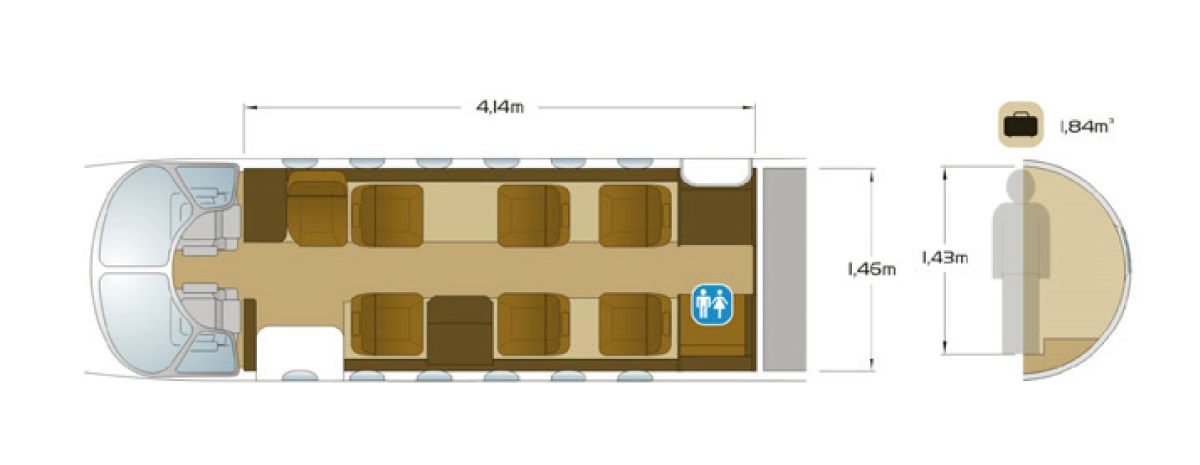 Le Citation CJ2+ peut transporter jusqu’à 7 passagers. Les dimensions de sa cabine sont idéales pour ce nombre de passagers. L’avion dispose aussi d’une soute à bagages assez importante. L’appareil est silencieux et très confortable. Il dispose de plusieurs équipements tels que des prises de courant, des sièges confortables et des tables rabattables.